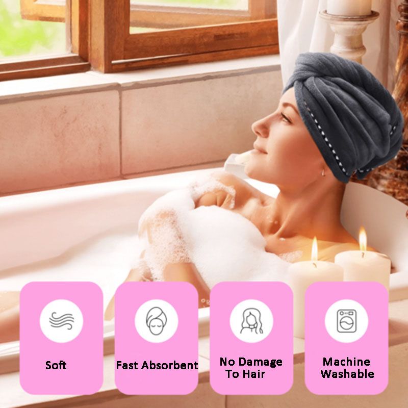 Nagyon puha, 100% mikroszálas anyag, gombos rögzítéssel a fürdőlepedőkhöz. A hajad nem fog csúszkálni fürdés közben.