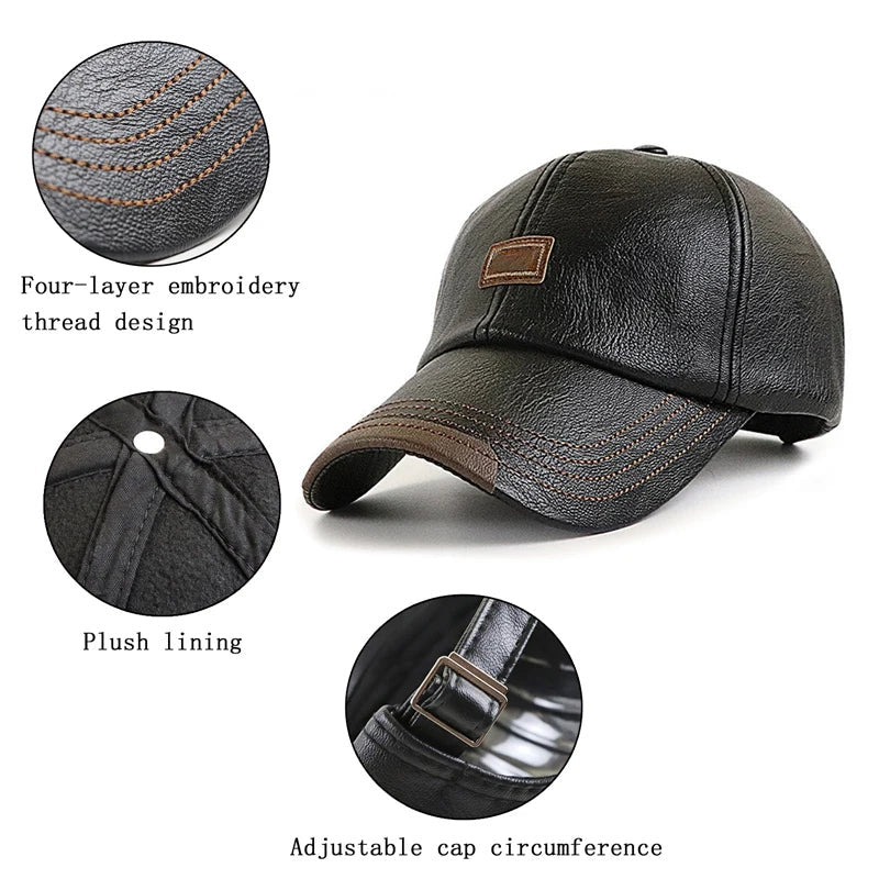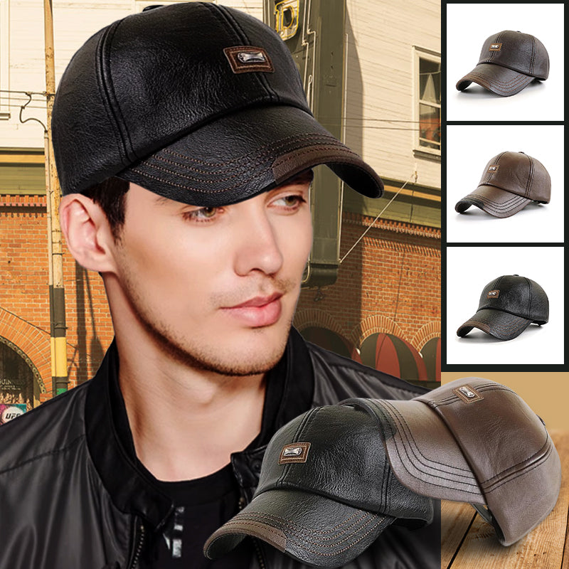 Férfi őszi és téli bőr baseball sapka meleg sapka🧢
