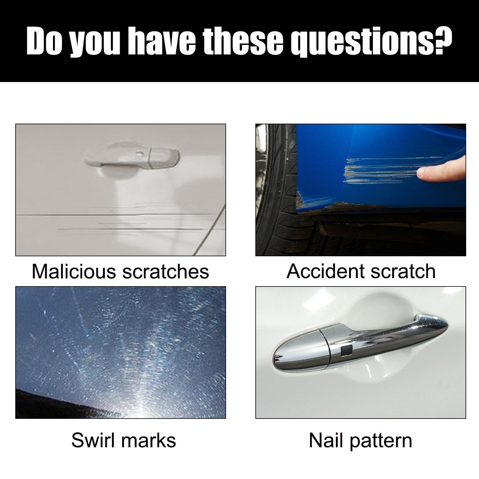 Alkalmas bármilyen színű autókhoz - ez az autó karcolás javító készlet nem választja ki a színeket. bármilyen színű járművön működhet, de kérjük, győződjön meg róla, hogy nincs bevonatkristály vagy festékvédő fólia . nem működik mély és nagy karcolásokhoz, mint például az alapozó, a fekete műanyag, a nagy területű alapozó vagy a nyilvánvaló kráterezés kézzel történő érintés közben.