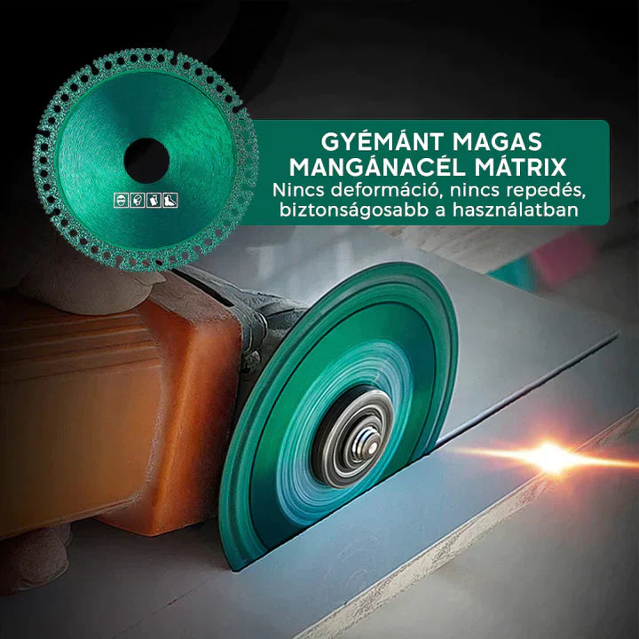 - Anyag: gyémánt + magas mangánacél mátrix