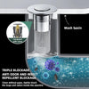 A hagyományos nyomógombos lefolyócsonkokkal ellentétben ez a lefolyódugó belül dugulásgátló szitával rendelkezik, amely szépen összegyűjti a szőrszálakat, és megakadályozza a lefolyó eltömődését. Nem jutnak ékszerek, gyűrűk, szennyeződések vagy más dolgok a lefolyócsőbe.