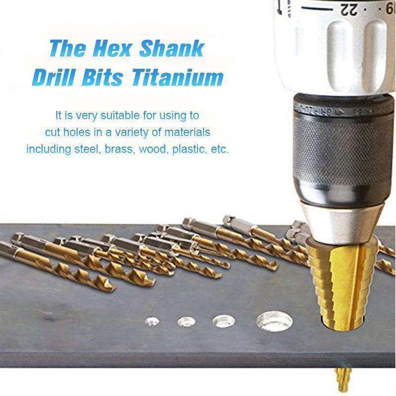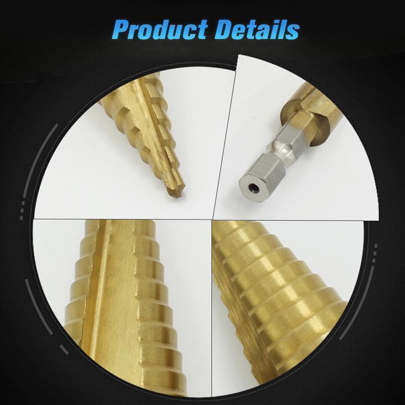 Ez a gyorsfúró készlet 3 darab lépcsős fúrót tartalmaz. Gazdaságos, könnyen tárolható, és sokoldalúan használható. A hatszögletű szárral ellátott titán bevonatú fúrók ideálisak furatok készítéséhez különféle anyagokban, például acélban, sárgarézben, fában, műanyagban stb.