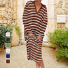 Elegáns V-nyakú csíkos osztott szegélyű ruha 4.27