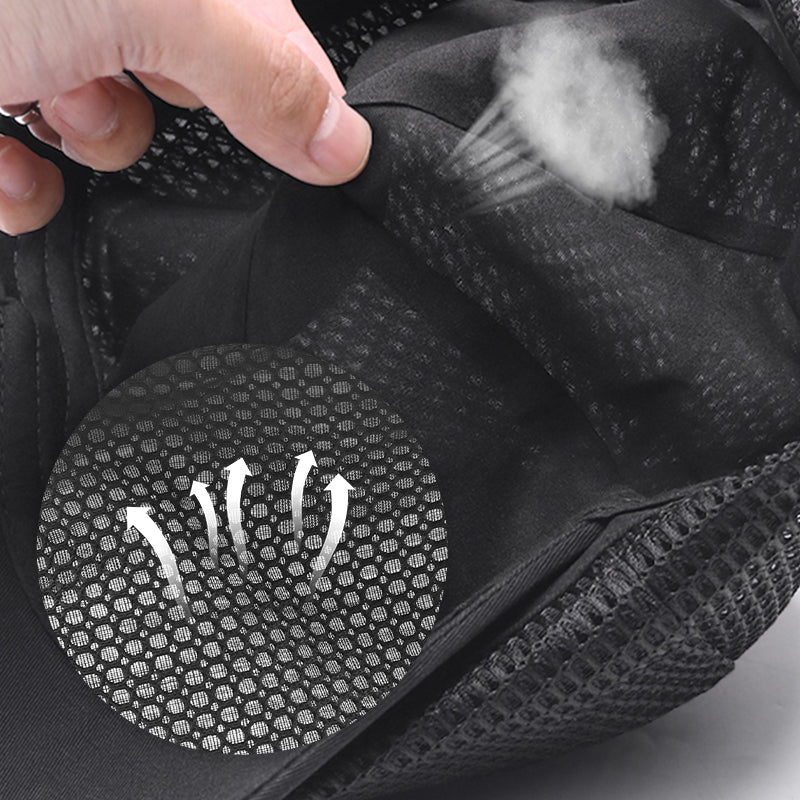 HATÉKONY VÉDELEM A NAPTÓL- A sapka széles karimája árnyékot ad az arcnak, védi a szemet és a bőrt a leégéstől. Ezenkívül a sapka oldalán és hátulján lévő hálós redők biztosítják a megfelelő szellőzést, megelőzve a túlzott meleg és izzadás okozta kellemetlenségeket.