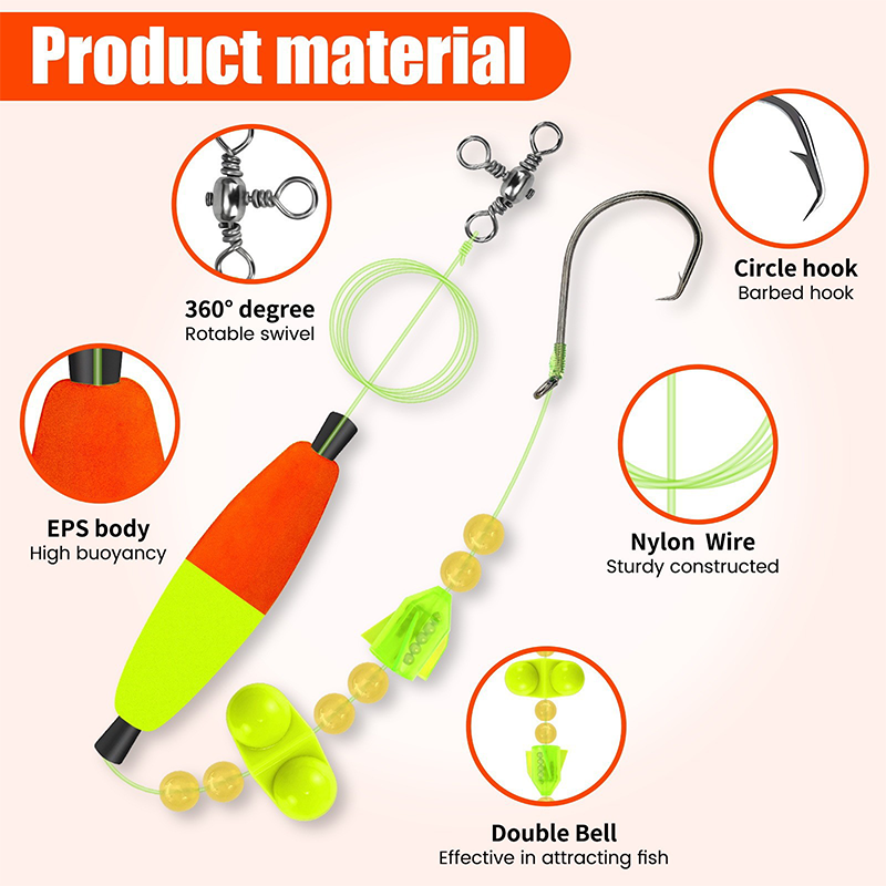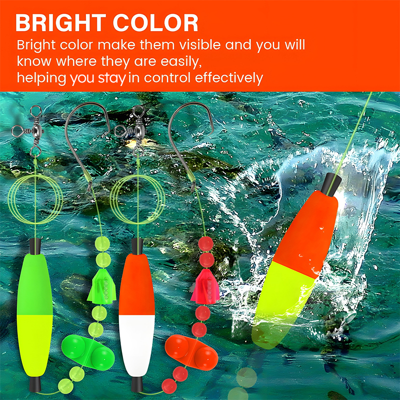PRÉMIUM KOMPONENSOK A LEGJOBB TELJESÍTMÉNYEKÉRT: Az EPS habú úszókat (2,5„-3”) a páratlan úszóképességért a nagy teherbírású nylon vezetőkkel és a kettős csörgő csengővel kombinálja, amelyek halakat vonzó rezgéseket hoznak létre. A horgok (6/0-10/0) biztos horgokat biztosítanak, míg a kiegyensúlyozott kialakítás optimális mélységben tartja a csalit.