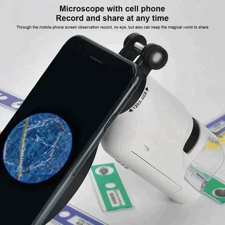 Természetesen! A mini mikroszkóp 60X és 120X közötti nagyításokat támogat. Könnyedén válthat e többszörösök között a hagymaminták és más lenyűgöző tárgyak megfigyeléséhez.
