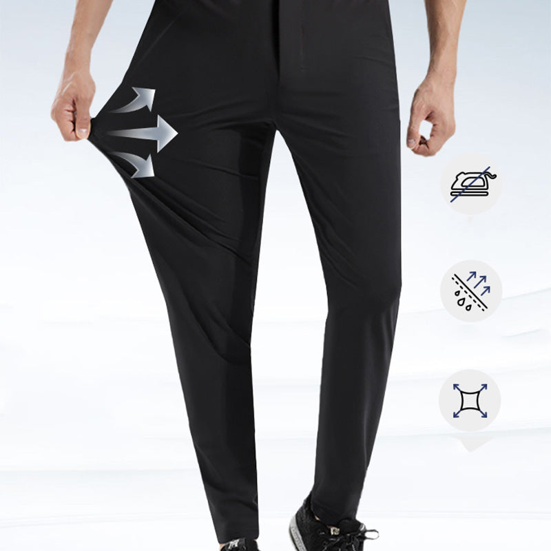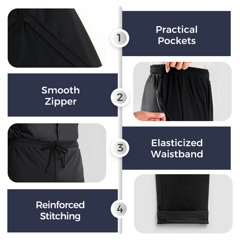 VASALÁS NÉLKÜL, 4 IRÁNYÚ NYÚJTÓSÁG: Búcsút inthet a ráncoknak és a mozgáskorlátozottságnak. Ez a melegítőnadrág fejlett négyirányú nyújtósággal rendelkezik, amely teljes mozgásszabadságot biztosít, miközben megőrzi a nadrág friss, ápolt megjelenését. Tökéletes edzéshez, utazáshoz vagy hétköznapi viselethez – kényelmes, vasalás nélkül.