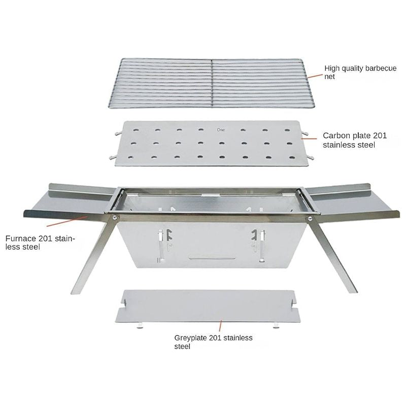 Csomag tartalma: 1 × Rozsdamentes acélból készült összecsukható kültéri grill