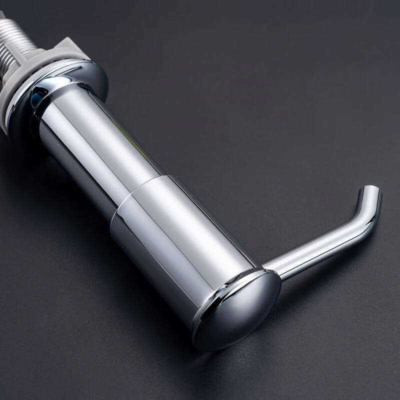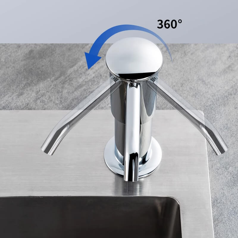 A konyhai mosogató szappanadagoló rozsdamentes acélból és ABS műanyagból készül, saválló és korrózióálló, 3''hüvelykes fúvókával, a szivattyú 360 fokban forgatható minden irányba, megfelel a különböző igényeknek, a beépített rugó, a sajtófej sima visszapattanás, ez a mosogató alatti szappanadagoló nagyon rugalmas.
