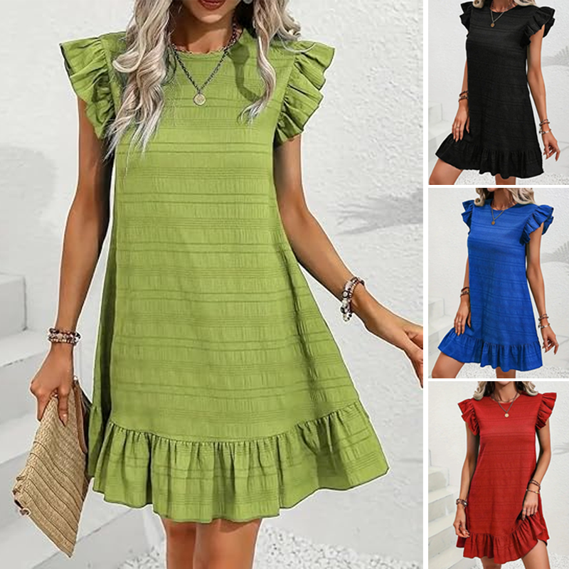 A csomag tartalma: 1 db nĆi fodros szegĂ©lyƱ ujjatlan, kerek nyakĂș ruha