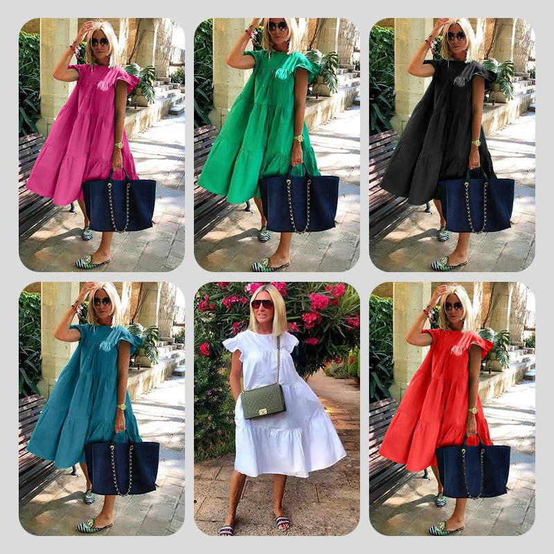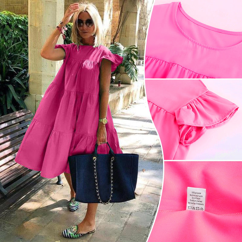 A csomag tartalmazza: 1 * NĆi fodros fodros fodros ujjĂș Tiered Midi ruha