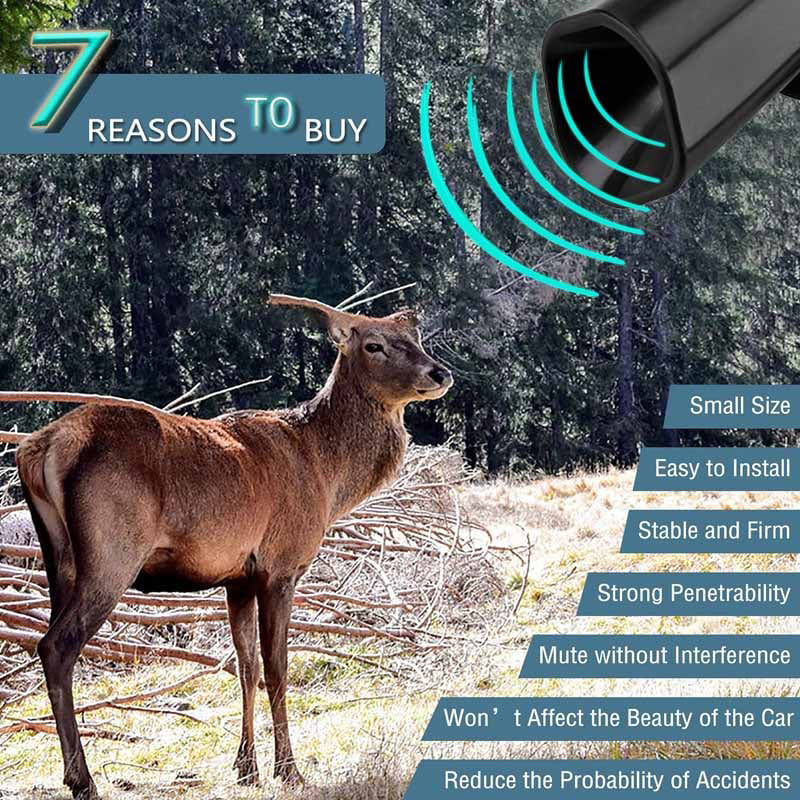 ÉLET- ÉS TULAJDONSÁGMENTŐ: A sípoló szarvas figyelmeztető eszközök barátságosak az állatok számára. A szarvas figyelmeztető automatikusan ultrahangot bocsát ki nappal vagy éjszaka 35 MPH feletti sebességnél, és akár 1/4 mérföldes távolságban is figyelmezteti a szarvasokat. A szarvas sípok célja, hogy megállítsa a szarvasokat a járműve előtt futó szarvasokat.