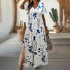 Női alkalmi virágos nyomtatás rövid ujjú ruha